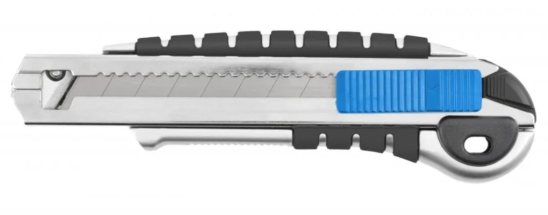 Produktbeschreibung Das Abbrechmesser mit 18 mm Klinge ist ein vielseitig einsetzbares Werkzeug, das speziell für Nachbearbeitungsarbeiten entwickelt wurde. Es eignet sich ideal zum Schneiden von Pappe, Tapeten, Teppichen, Planenstoffen, Druckfolien, PVC-Folien und vielen weiteren Materialien. Dieses Messer kombiniert Robustheit, Präzision und Sicherheit und ist ein unverzichtbares Hilfsmittel für Heimwerker und Profis. Eigenschaften und Vorteile Hochwertige Klinge: Gefertigt aus SK5-Federstahl mit hohem Kohlenstoffgehalt, bietet die Klinge erhöhte Beständigkeit gegen Risse und Absplitterungen. Dreifach lasergeschliffene Kante: Sorgt für eine herausragende Schärfe und präzise Schnitte. Sicherheitsmechanismus: Speziell konstruierter Führungsmechanismus verhindert das Herausziehen der Klinge bei einer Kraft von bis zu 60 kg. Automatische Sicherheitssperre: Verhindert ein ungewolltes Ein…