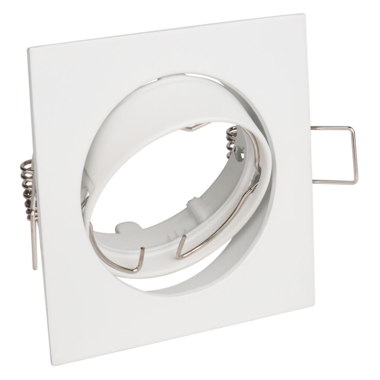 Hier finden Sie passende LEDs (einfach auf das Bild klicken und Sie gelangen zu den jeweiligen Kategorien):   Alle Details von Jacky auf einem Blick: Außenmaß: 82mm x 82mm Lochausschnitt (rund): 72mm – auch passend für Löcher von 72-76mm Aufbauhöhe: 2mm Einbautiefe mit Leuchtmittel und Fassung: ca. 60mm Energieeffiziensklassenbereich: A – G Material: Aluminium-Zink-Druckguss Oberfläche: Matt Schwenkbar: Ja, circa 35° Schutzart: IP20 Max. Wattleistung Leuchtmittel: 15Watt (nicht für Halogenleuchtmittel geeignet) Leuchtmittelbefestigung: Halteklammer Leuchtmittel austauschbar: Ja, LEDs austauschbar
