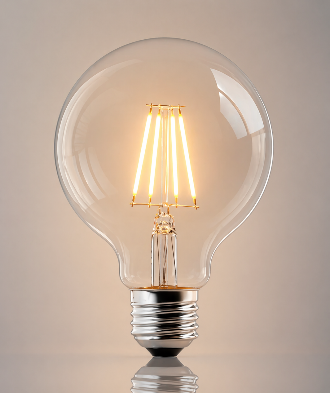 LED Filament Lampe G95 – E27, 4W, warmweiß (Restposten) Große Globe-Form (G95) – dekoratives Design Sockel: E27 Leistung: 4 Watt (entspricht ca. 60W) Lichtstrom: 470 Lumen Lichtfarbe: warmweiß (2700K) Rundumlicht: 360° Abstrahlwinkel Klarglas mit sichtbaren Filamenten Farbwiedergabe: CRI >80 Spannung: 220–240V Schutzart: IP20 (für Innenbereich) Maße: Ø 95 mm, Höhe ca. 140 mm Energieeffizienzklasse: E Ideal für: Wohnräume, Pendelleuchten, dekorative Beleuchtung Hinweis: Restposten – nur solange der Vorrat reicht.